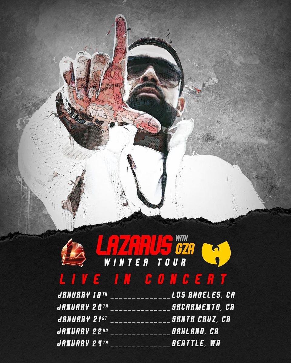 Taking the stage live across five exclusive dates, the west coast is in for a legendary hip-hop display as Detroit’s own Lazarus joins forces with Wu-Tang Clan’s own GZA for the cold season.
